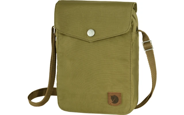 Praktische kleine Umhängetasche aus G-1000 HeavyDuty Eco S, inspiriert von den Pattentaschen der Greenland-Kollektion von Fjällräven. Eine etwas größere Version der beliebten Pocket-Tasche, jetzt mit Platz für ein Taschenbuch oder ein kleines Tablet. Praktisch auf Reisen, wenn es nur auf das Nötigste ankommt.