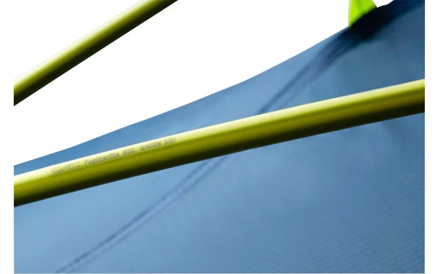 Die Stangenabschnitte sind alle miteinander verbunden. Das macht das Zelt witterungsbeständig und vereinfacht das Aufstellen. Das Zelt benötigt nur sehr wenige Heringe – ein großer Vorteil, wenn Sie es z. B. auf felsigem Gelände aufstellen wollen. Innenzelt und Außenzelt sind ebenfalls miteinander verbunden und werden einfach auf das Stangensystem gesteckt. Das ist sehr praktisch, wenn Sie das Zelt im Regen aufstellen müssen.