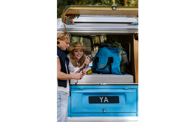 Duffelbag aus robuster LKW – Plane mit abnehmbarem Schultergurt. Ein Kompressionsriemen dient zum Verbinden von 2 Taschen. Mittels Schraubventil kann überschüssige Luft entweichen, sodass ein kompaktes Packmaß entsteht.